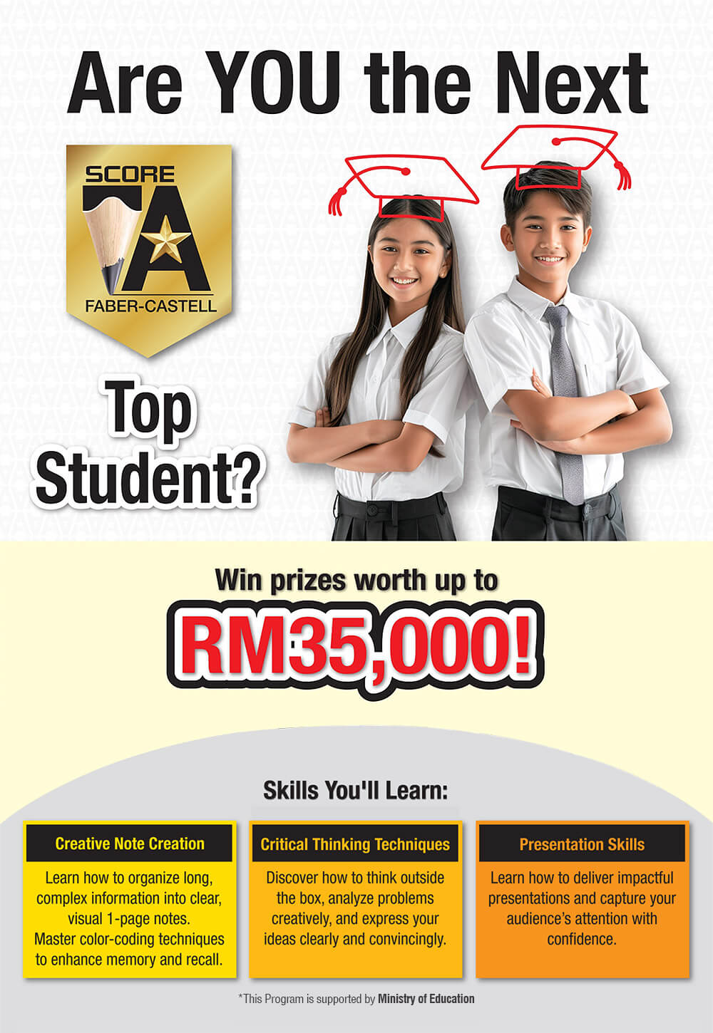 Score A Creative Learning Challenge is an annual program by Faber-Castell Malaysia with the objective to help students to study better with the creative learning techniques while make learning fun-filled, explorative, and insightful using colours and creative notes (mind maps, river flow notes, memory palace etc) to optimize their academic potential.